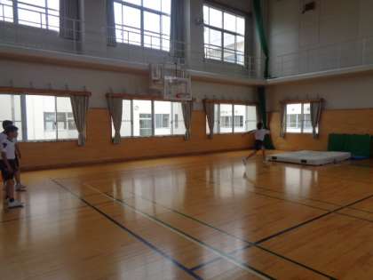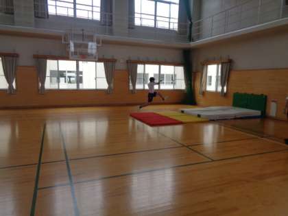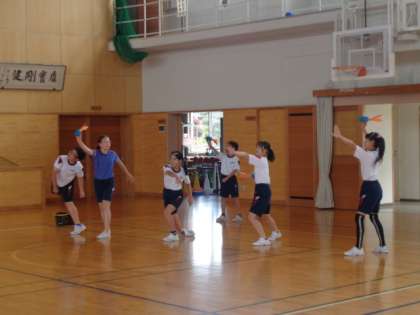 友達とフォームを確認しながら、「投げる・跳ぶ」運動をしています。