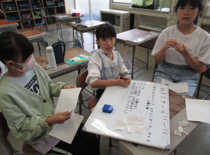 運動会が終わり、一段落つきました。運動会でのがんばりを称えて、集会をすることにしました。集会名を話し合った結果、「第1回おむすび集会」になりました。