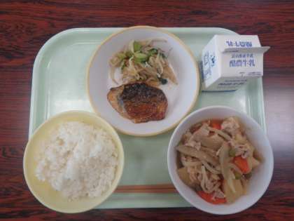 今日の献立は、ご飯 豚肉の南蛮煮 鯖の塩焼き 香味和え 牛乳 でした。