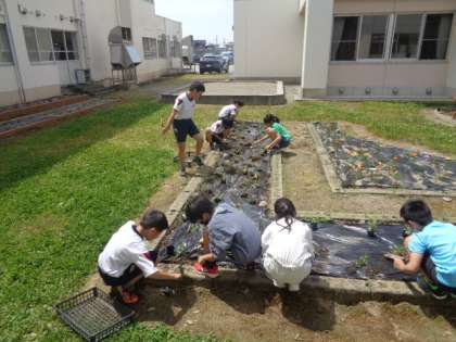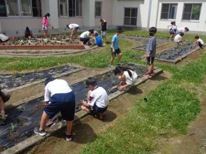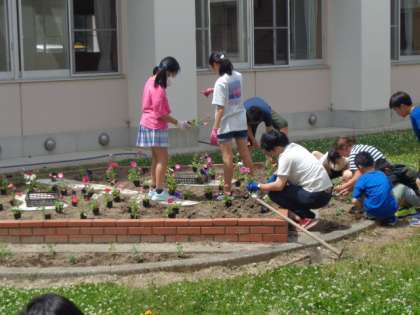 5・6年生が全校児童の最後として、花壇の花植を行い、中庭の花の植え替えが終わりました。大切にお世話をしていきます。