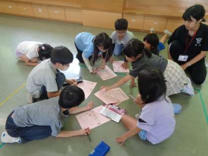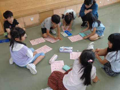 1・2年生がグループを作り自己紹介をしたり、目当てを決めたりしています。どんな遠足になるのか楽しみです。