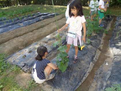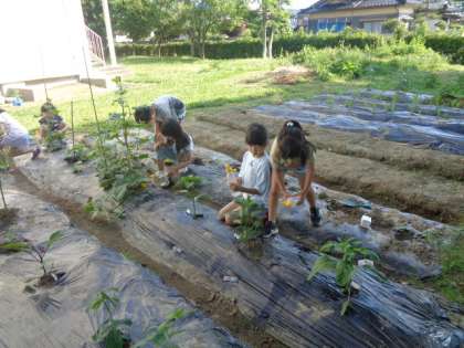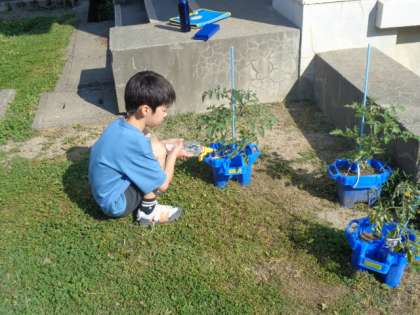 野菜の水やりは、毎朝の日課です。一日一日の成長をチェックしています。