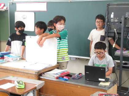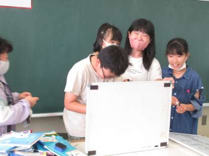 学級会で話し合った「第1回おむすび集会」を行いました。各会社ごとに出し物を考え、みんなで楽しみました。今回の集会のねらいは、「友達のよいところを発見しよう」です。