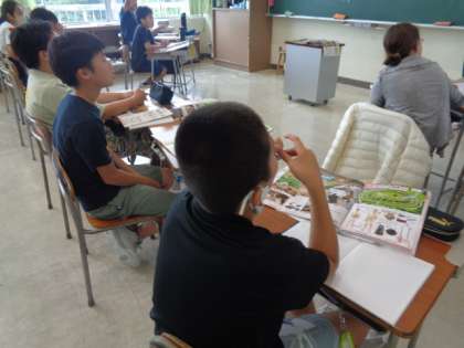 社会科では、歴史の学習がはじまっています。縄文時代の人々のくらしの様子を絵やグラフから想像して考えています。