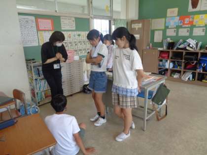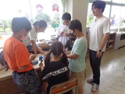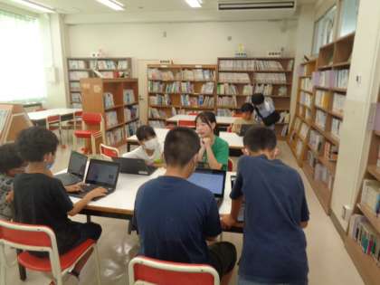 各班で集いに行う学校紹介やキャンプファイヤでの出し物の相談をしています。