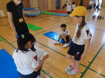 なかよしは班ごとに分かれ、班長を中心に全ての種目の記録を測りました。