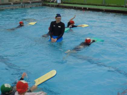 3・4年生は2回目の水泳指導。クロールの手や足の動かし方を教えていただきました。自分の泳ぎを確かめながら楽しんでいます。