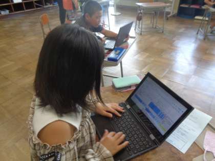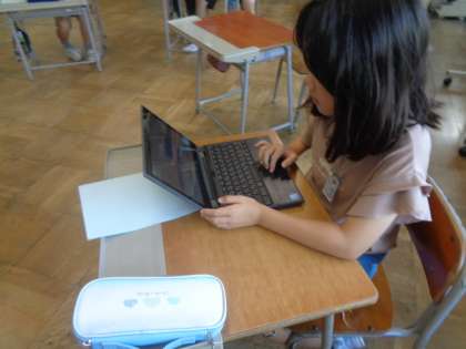 PC上にある夏休みのしおりに、目当てや予定を書き込んでいます。1学期も残り2日となってきました。
