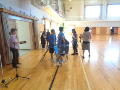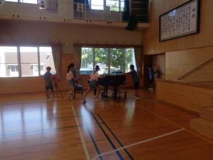 終業式の終了後、黙々と会場の後片付けをする6年生です。