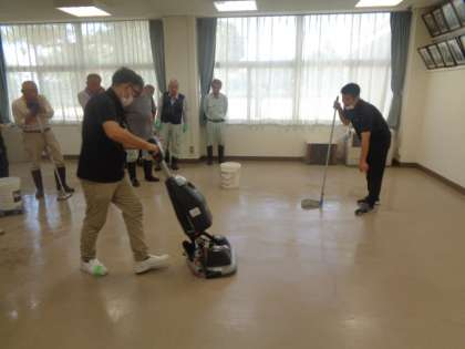 地域の学校の用務員さんたちの研修として、校長室と会議室を新しい機械を使ってきれいにしていただきました。短時間の作業でしたが、掃除前とは見違えるようになりました。