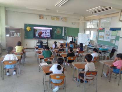 2学期がスタートしました。熱中症対応として、始業式は体育館ではなく、教室で行いました。校長先生が2学期をスタートに当たり「進んで挨拶することと、一日一日のめあてと振り返りをしっかりしましょう」と話され、子供たちは真剣に聞いていました。教頭先生からは、熱中症対策としてとして気を付けることの話もありました。