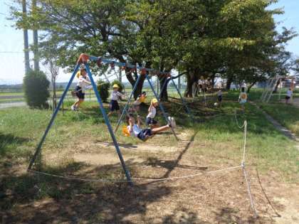 熱中症指数が29であった大休憩。子供たちは激しい運動を避けたり、こまめに水分補給をしたりしながら遊んでいます。
