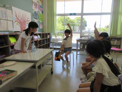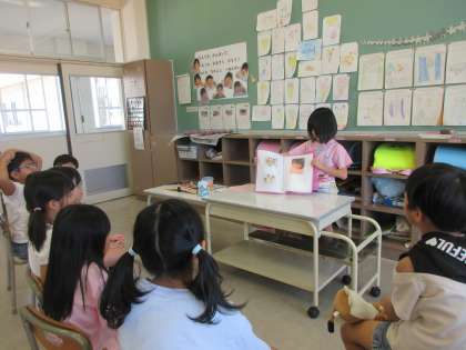 今日は、夏休みの作品を紹介し合い、友達の作品で気になることを質問したり、感想を伝えたりしました。