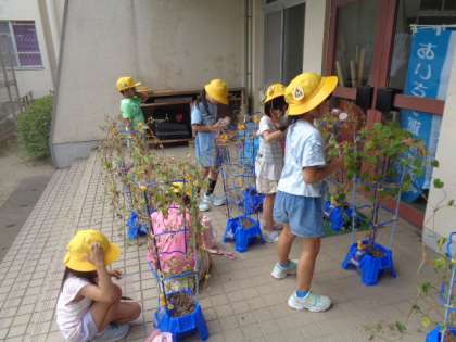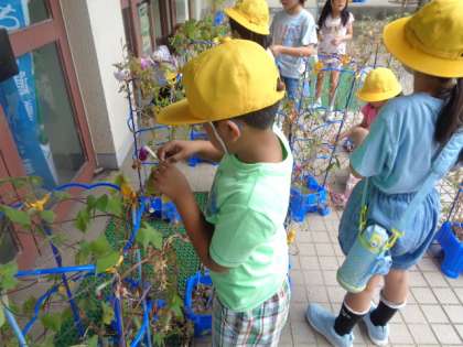 1学期や夏休みの間、ずっとお世話を続けていたアサガオの種を採っています。黒々とした立派な種をたくさん採ることができました。