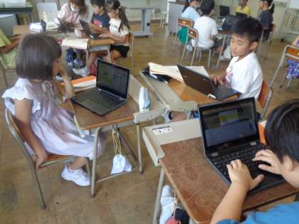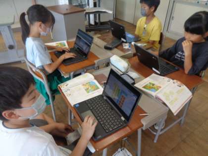 「山小屋で3日間過ごすとしたら、何を持て行きますか?」自分の考えを付箋でPCに書き込み、グループの人たちと意見交換しています。