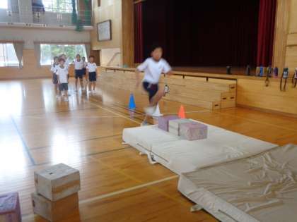 延期となったチャレンジ陸上記録会に向け、体育館で走り幅跳びやソフトボール投げの練習を行いました。体育館の熱中症指数は27。休憩を取りながらのの運動は、しぱらくの間、続きそうです・