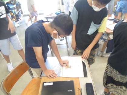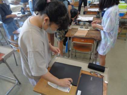 夏休みの自由研究。最後に全員の作品を見合い、よかったことやためになったことなどをシール伝えました。