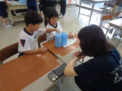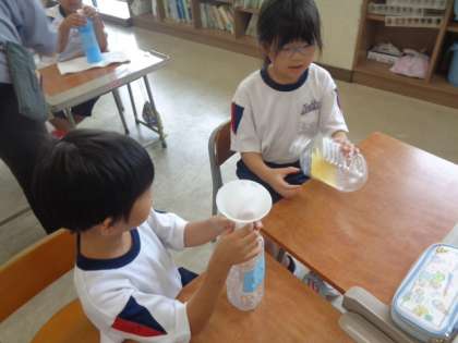 「「たくさん水が入るのはどっち」子供たちは自分なりの考え方で、比べていました。
