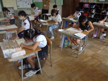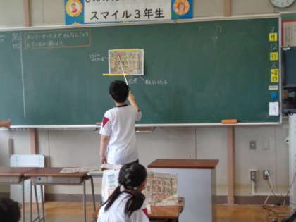 スーパーマーケットでは、どのような仕事があるのか、イラストを参考にして考えています。