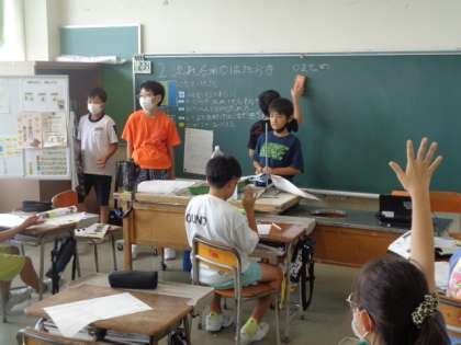 流れる水のはたらきについて、自分たちで実験方法や予想などを話し合い、次の活動につなげています。