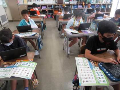 分からない単語をインターネットを使って調べたり、発音を聞いたりするなど自発的に活動していました。