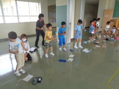 2学期初めてのけん玉級位認定会。お二人のけん玉名人さんにも来ていただき、上達するこつをたくさん教えていただきました。子供たちの集中力も高まり、いつも以上に技の成功者が続出。とても盛り上がりました。