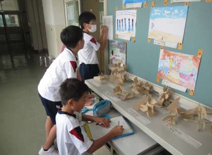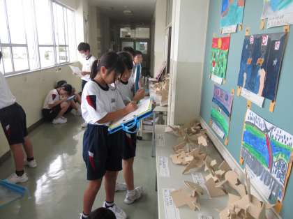 友達が描いた作品の鑑賞をしました。今回は、班の友達の作品のよいところを中心に見つける活動をしました。
