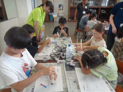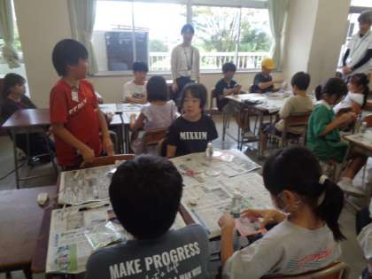 3・4年生は、磁石に付く砂鉄の性質を生かしたおもちゃ作りです。磁力に引きつけられながら変化する砂鉄の動きや模様に見入ってしましました。