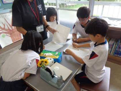 学習発表会の発表する劇のシナリオが配られ、早速せりふを読み合わせています。