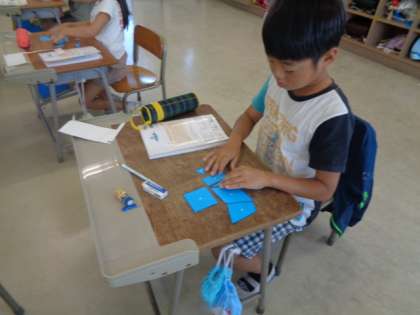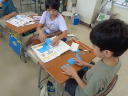 いろいろな大きさの三角形や四角形を組み合わせて、いろいろな形作りに挑戦しています。
