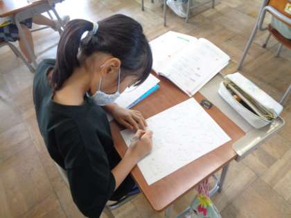 3けた×1けたの計算練習をして、学習の内容を確かめています。