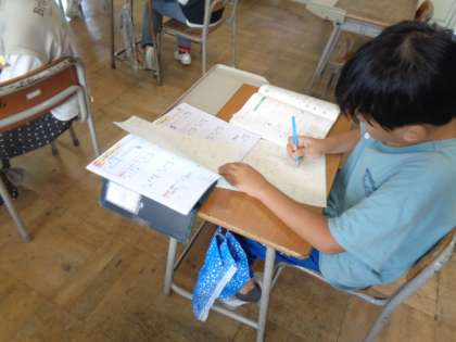 3けた×1けたの計算練習をして、学習の内容を確かめています。