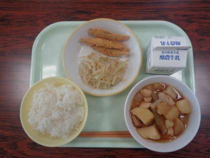 今日の献立は、 ご飯 大根と鶏肉の中華煮 きびなごのさくさく和え 甘酢和え 牛乳 でした。