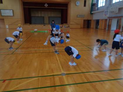 馬跳びの特訓。全員が見事成功しました。