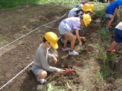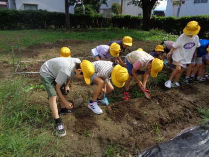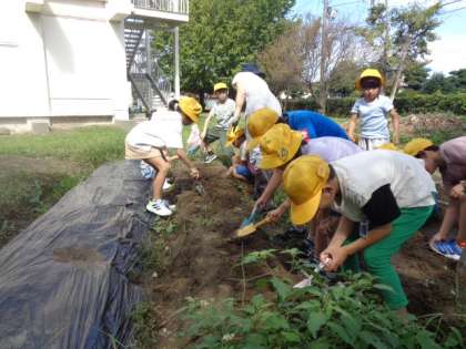 冬に植える野菜の土作りをしています。どんな野菜を植えるのかな。