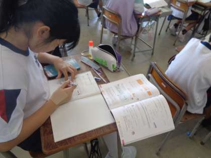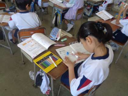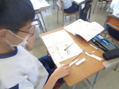 「2÷3」の意味について、図で分量を確かめながら考えています。
