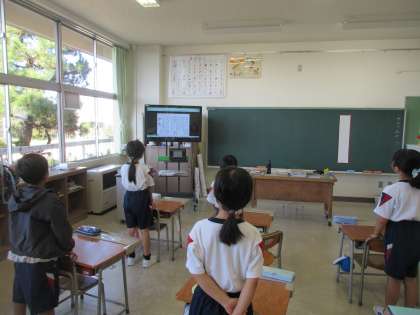 10月の朝の時間は「Smile Again」を歌っています。まだ2日目ですが、歌詞を見ながら音楽に合わせて体を揺らしたり、楽しく歌ったりしていました。