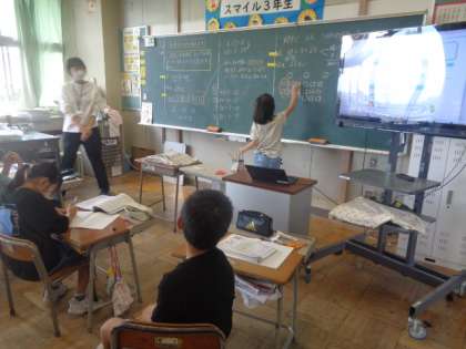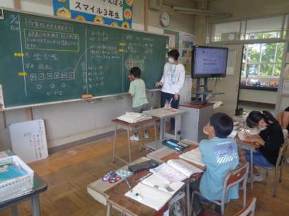 2桁のかけ算の仕方を、図や言葉で表しながら考えています。