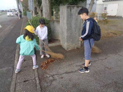 秋の季節も深まり、校庭の木々の葉っぱも地面を覆うようになってきました。毎朝、朝の落ち葉掃きボランティア隊が出動しています。