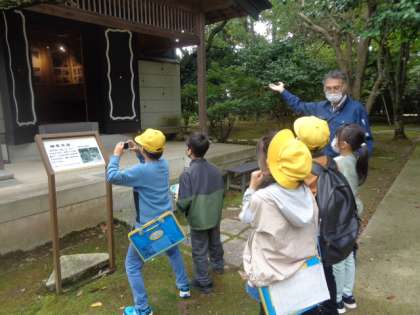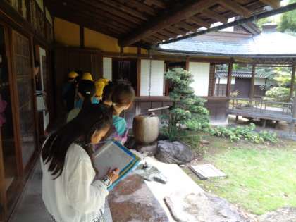 校区にある「内山邸」を見学しました。古くからの豪農であり、八幡小学校の始まりの場所でもある「内山邸」には、素敵な施設がたくさんありました。