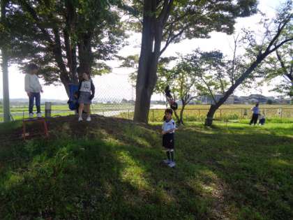 すがすがしい天気のもと、思いっきり体を動かしながら、遊びに夢中です。