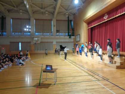 明日の区域連合音楽会に向けて、3・4年生が全校児童の前で歌いました。響き合う歌声に、素敵な感想がたくさんがたくさん寄せられました。明日の区域連合音楽会で、練習の成果を発揮して欲しいものです。