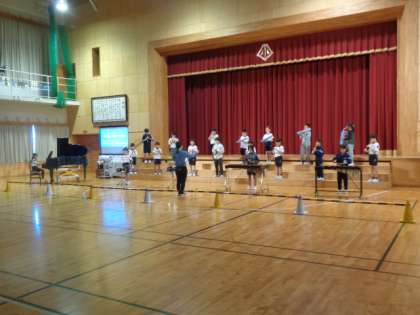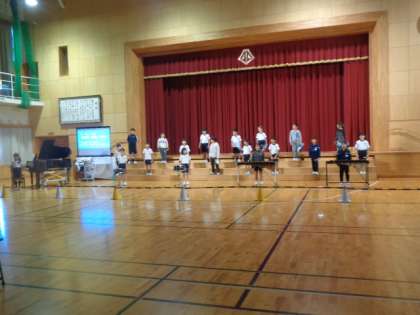 合唱と合奏の二つをつなげての練習。区域連合音楽会とは違う趣があります。