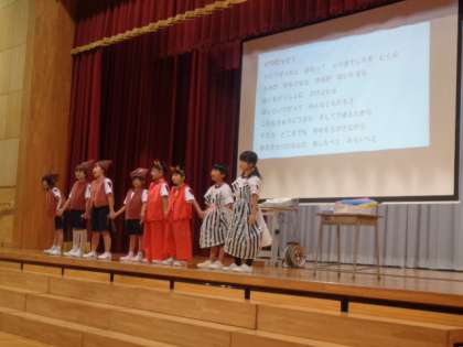 初めて他の学年の人たちの発表を見合いました。どの学年の演技や歌声も練習を重ねる中でレベルアップし、見応え聞き応えのある内容になってきあした。