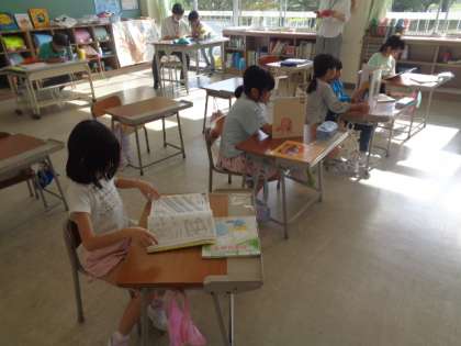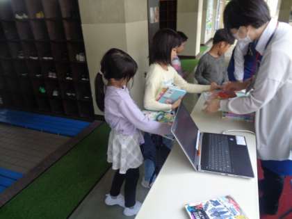 子供たちが楽しみにしている巡回図書。早速教室で、楽しく読んでいます。