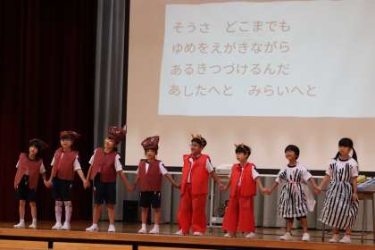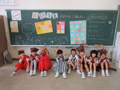 学習発表会の本番、とてもすてきな発表でした。一人一人が自分のこと、友達のことを考えて劇をやり遂げました。本番後は、達成感のある表情をしていた子供たち。一人一人が主人公でした。これからも1年生は、がんばります!
