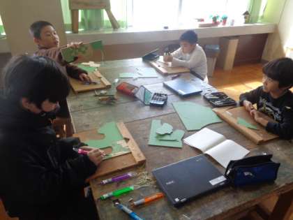 心温まるBUMが流れる中、いろいろな形を組み合わせる造形活動に夢中です。