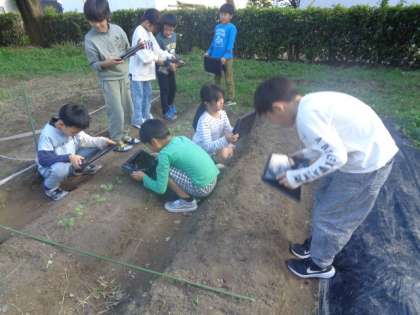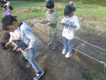 農園に植えた冬野菜の様子をPCに写真で収め、観察をしました。地道なお世話は継続中です。
