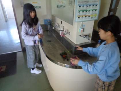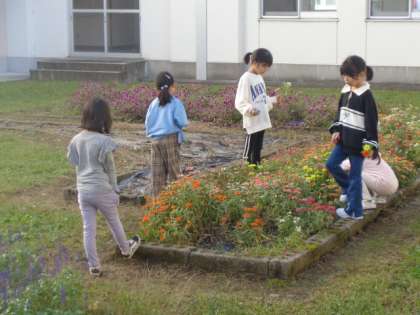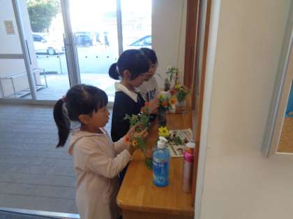 今日も、中庭に咲いているきれいな花を、素敵に飾っています。