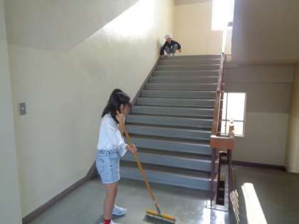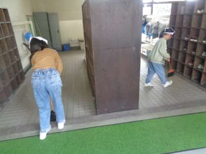 なかよし班掃除の担当場所が変わり、班長を中心に役割を決めました。